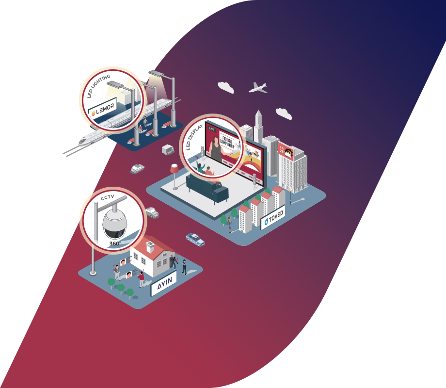 Through our products, we realize the safety value of CCTV, the light value of LED lights, and the information provision and moving value of LED displays.